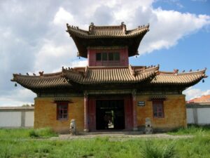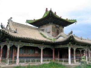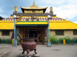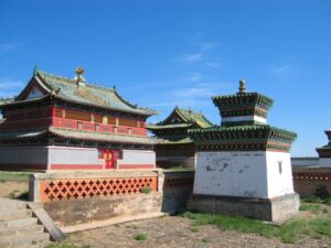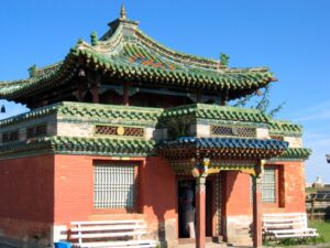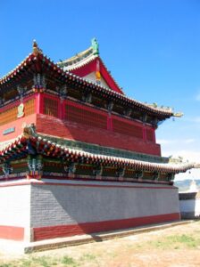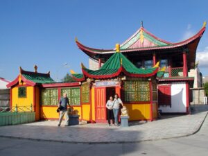 Some of us still had the stamina to explore UB so Ann, Franny, Robby and Becky made a break from everyone else who was headed back to the Palace Hotel for some rest and relaxation. We were on our way to find Lenin’s statue, which is still proudly displayed in front of the Ulaanbaatar Hotel. Afterwards, we wandered through town in search of Choidjiin Lam Monastery. The temple complex is located just north of the square and is a pleasant surprise away from the bustling, metropolitan city. It is a complex of temples that no longer functions as a working religious center, converted into a museum in 1942. The complex was well worth a visit with super friendly staff eager to answer any questions we had. Very proud of their country, they patiently explain that Mongolia’s painting, music and literature are dominated by Tibetan Buddhism and nomadism. Tsam dances are performed to exorcise evil spirits and are influenced by nomadism and Shamanism. While they were outlawed during communism, they’re beginning to be performed again. Traditional music involves a wide range of instruments and singing styles. In Mongolian khoomi singing, carefully trained male voices produce harmonic overtones from deep in the throat, releasing several notes at once. Traditional music and dance performances aren’t complete without a touch of contortionism, an ancient Mongolian tradition. We are grateful for their explanations as it will serve as a good foundation for our dinner experience tonight as well as our upcoming trek into the countryside tomorrow. We spent about an hour here admiring the temples, sculptures and thankas before flagging down a taxi back to the Palace Hotel.