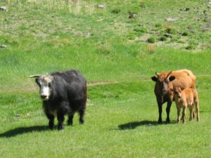 We make numerous stops throughout the day to break up the monotony of a long journey. On one of our stops, we see two hairy yaks in the distance and encroach upon them to take their photos. Two young cowboys (aged 8-10) saunter up on horseback and showoff their cattle corralling techniques. They are camera hogs and love the fact that our entire group is eagerly snapping shots of them.