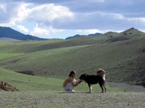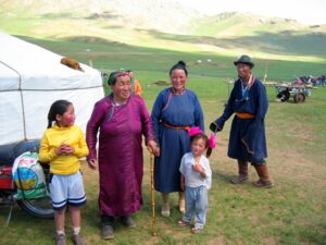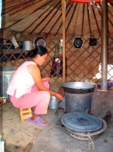 Lisa giggles after a bottle of Mongolian snuff is passed around. Mongolians share their snuff bottles as part of their greeting ritual which is called “Khoorog”. When guests visit, the head of the household passes around a snuff bottle, holding it in their right hand and extending it out to the guest as if to shake hands, left hand holding up the right elbow