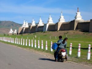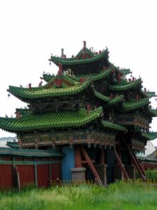 Lonely Planet provides good background material that enables us to appreciate tomorrow’s visit to the fullest, “The Mongols had little inclination to ally with other nomadic peoples of northern Asia. They remained little more than a loose confederation of rival clans until the late 12th century, when a 20 year old Mongol names Temujin emerged and managed to unit most of the Mongol tribes. In 1189 he was given the honorary name of Genghis Khan, meaning ‘universal king’. The Genghis Khan imprinted in the memory of the west bears little relation to the Chinggis Khaan revered by Mongolians. Not only is the spelling different, but to Europeans images of war mongering, mercilessness and brutality reigns, whereas to the Mongolians his name embodies strength, unity, law and order. In 1220, Genghis Khan decided to build the capital city of his vast Mongolian empire at Karakorum. Building was completed by his son, Ogedai Khan, after Genghis’ death, but Karakorum served as the capital for only 40 years before Kublai Khan moved it to what is now Beijing. Following the move, and the subsequent collapse of the Mongolian empire, Karakorum was abandoned and then later destroyed by hordes of Manchurian soldiers. Whatever was left was used to help build the Erdene Zuu monastery in the 16th century, which itself was badly destroyed during the Stalinist purges”.
