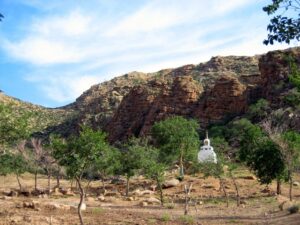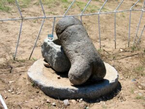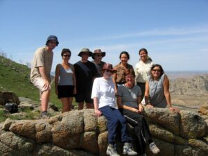 There are plenty of entrepreneurial souvenir hawkers set up outside of Erdene Zuu’s walls and a few members of our group split off in search of that perfect Mongolian souvenir. After everyone has had the opportunity to shop to their heart’s content, we board our bus and drive a short distance to a small valley overlooking Karakorum. Interestingly, a phallic rock is hidden in the valley and local tradition tells us that any woman who touches the rock will become pregnant within the year. Needless to say, all the women in our group kept their distance from that rock! Instead, we focus our energy on consuming lunch, which is quite tasty. After lunch, we prepare ourselves for the hot journey to Hogno Khan Mountain range, which will be our haven for the next two days.