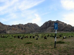 Gurvansaikhan is 340 km SW of UB, near the town of Dalanzadgad and not far from the Chinese border”. Lonely Planet provided a bit more detail, “unlike other national parks in the Gobi desert, the Gurvansaikhan contains notable attractions, and the facilities (ger camps and roads) are reasonably good. The park contains mountains, dinosaur fossils, extraordinary sand dunes, rock formations and a valley that has ice for most of the year. The part is home to over 200 species of birds, including the Mongolian Desert finch, cinereous vulture, desert warbler and houbara bustard. The sparse vegetation manages to support black-tailed gazelle, snow leopard, ibex, argali sheep, and endangered species of wild camel. A small permit fee is collected at the gate to the Yolyn Am valley, where there is also a small museum of stuffed animals” as well as a replica of the legendary ‘killer worm’ (which falls into the same category as Big Foot, Loch Ness, and the Yeti).