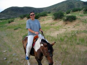 That afternoon, while the rest of the group is relaxing in their gers, several of us decide to try horseback riding. Bob, Ann, Frances, Becky and Robby decide to give it a go and enjoy a long ride through the valley. We return to base camp around dusk and by then, feel as if we have bonded with our horses. Despite our growing love for our horses, we are still ready to dismount as the Mongolian saddle is extremely uncomfortable and has rubbed us raw in some areas. Despite the discomfort, it was the first real horseback riding experience for Becky and Frances who are thrilled to have experienced it in the Hogno Khan mountain range. We sleep well that night in anticipation of heading back to UB tomorrow and having a chance to mingle in a bustling city again.