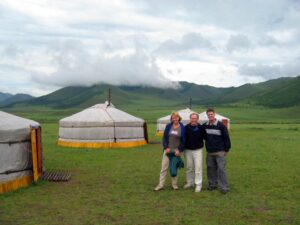 Arriving in UB after a 6 hour flight and numerous time zones later, our bodies were all thrown out of whack. We experienced no problems getting through passport control or customs, and were soon greeted by a smiling Alex, who would be our tour leader for the duration of the tour. She directed us over to a small group that was huddled in a corner and we met the rest of our tour group: Ann, Eva, Steve, John, Liz, Gerta, and Ushee. Ann is an experienced traveler who has explored all four corners of the world…she funds her travels working as a social worker in England and little Mongolian children as truly smitten by her. Eva hails from Budapest, Hungary…she has a fantastic apartment in Pest, a great job and an ever greater boss who encourages her to soak in the sun during those rare, sunny moments in the city. She has definitely caught the ‘itchy feet’ bug and has backpacked her way through over 61 different countries…we feel inspired to have met her. Steve is from England and has served as an overland truck driver. He laughs when our Russian built truck gets stuck in ruts and we can only guess that he has been through worse. John and Liz are the dynamic duo from England. John used to run a trekking company in Katmandu and Liz is a doctor. Whenever we are snoozing in our gers, they can be seen on a far off mountain top, climbing to their hearts content. Gerta is one of New York’s best. Originally from Germany, she has lived in Manhattan for over 20 years and has completely adopted a New York attitude. We love to hear Gerta talk and she has been our heroine on more than one occasion when she has put rude line-cutters in their rightful place. Ushee is also from Germany but lives in England with her wonderful husband. She keeps a picture of him in her eyeglasses case which she furtively sneaks peaks from every once in a while. Her daughter lives in Sri Lanka and her description of the island makes us bump Sri Lanka to the top of our “Places to Go” list.