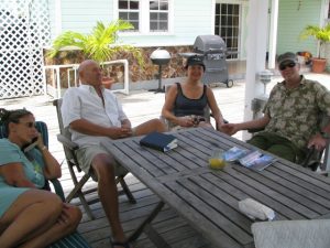 We were staying at Jolly Harbor Villas, and after checking in and signing for our keys, we checked into our two villas. Both of them were perched on the marina, and we found that instead of walking on the road to get to each other’s villa, we could simply hop over the balcony and walk the gangplank to get to the adjacent villa’s balcony where we’d hop back over. It took a bit of balance and limberness, but soon we all got the hang of it! Once Joe & Judy arrived a few hours later, they started taking bets in anticipation of who would fall into the water first!