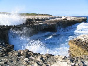 After our late lunch, we decided to drive onward to Devil’s bridge (a natural arch caused by the erosion of the sea on the Eastern coast), before circling back to Antigua Village to check out by 6 pm. Our LP guide describes Devil’s Bridge as “a modest coastal sea arch, Devil’s Bridge is at Indian Town Point, an area thought to be the site of an early Arawak settlement…Be careful when you’re walking near the arch as the Atlantic breakers that have cut the arch out of these limestone cliffs occasionally sweep over the top”. We saw a local spear fishing near the cliffs, but the water did look very rough and this is one of Antigua’s rare “no swimming” zones.