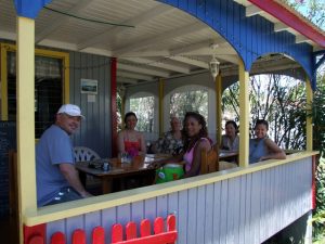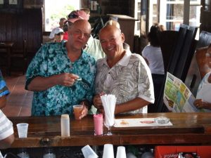 The first four traverses were quite easy, helping all of us become at ease with the zip line concept. The fifth ride was the longest, and what a ride! We definitely have to say that the Canopy Tour is a lot of fun…the guides are professional and safety conscious. They kept trying to pump us up for the challenge course at the end of the tour. We soon found out that we were all up for the challenge. Shannon definitely felt at ease as she nimbly tackled each obstacle course, making it all look too easy. Our 3 hour canopy tour seemed to end too quickly but what a high! We definitely give the Antigua Rainforest Canopy tour two thumbs up. Maurice was waiting to bring us back to Jolly Beach where we decided we’d break for lunch before gathering to go out for Shirley Heights. Benji recommended being ready to go at 4 pm, so we cut him loose until then.