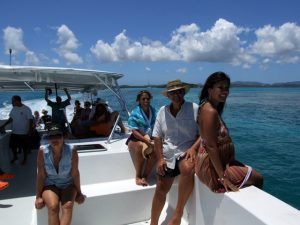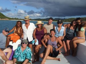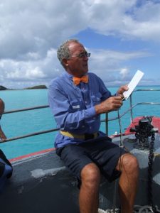 Our Adventure Antigua tour pulled out from Jolly Harbor at around 0930. We immediately could see that this was an extremely popular excursion. The boat was packed. Our friendly guides introduced themselves (Eli was not on board but we were still in excellent hands) and gave us a brief synopsis of the day’s events: “During the tour guests have the opportunity to participate in a variety of activities. Before lunch, a snorkeling lesson will be given for those who have not snorkeled before or who want a refresher. All equipment is supplied and crew members will accompany both guided snorkeling sessions after lunch. For those who wish to enjoy spectacular views of the North Sound and the north coast of Antigua, we recommend taking the easy nature trail from the beach at Great Bird Island, up to the summit, and if you really want to get off the “beaten track” there will also be a chance to explore a cave. However, if you simply want to relax, there is plenty of shade on the boat and of course, easy ladders for those of you who fancy a refreshing dip. There is also a chance to bathe in the natural jacuzzi at Hell’s Gate island. And throughout the day there will lots of time to take those souvenir photos that will make you the envy of your friends back home! Local fruit juices like Passion, Tamarind, Guava, and Lime are available throughout the day and the delicious lunch is served on the boat while it is moored in one of the breathtaking bays of Bird Island. As the tour draws to a close and the boat heads home into the setting sun, Eli’s ‘secret recipe’ rum punch is presented to make a perfect end to a perfect day.”
