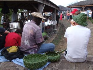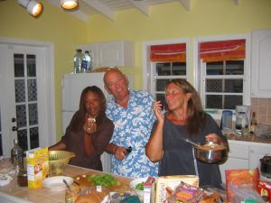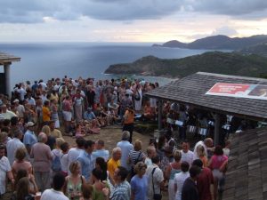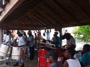 Lunch was a simple affair with everyone helping to throw something together. We had a couple of hours to relax before heading out to what is touted as Antigua’s biggest party, the Sunday BBQ/steel drum band of Shirley Heights. When Benji returned to pick us up, all twelve of us squeezed into the van and headed off to see what the hype was all about. Benji was an aggressive driver, although we really didn’t know what the rush was. At one point, he cut off another driver, whose car scraped the side of our van. We won though, cause the guy ended up crashing into a ditch. Unbelievably, Benji kept driving. That must have infuriated the other driver, who managed to catch up with us, overtake us and stop suddenly, blocking the road so that Benji had no choice but to stop. We were prepared to witness Benji getting pummeled in the driver’s seat, but to our surprise (as well as the antagonized driver), Benji knew the guy and escaped with a verbal tongue lashing. We didn’t realize it at the time, but that was to be the most exciting part of visiting Shirley Heights!