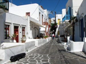 Known as the party island in Greece, boasts a glamorous reputation of having great beaches, stylish bars, expensive shopping, and an active nightlife. But through all the fame, Mykonos has managed to retain its Greek identity and the cubist charms of a traditional Cycladic town. The most popular beaches, namely Paradise Beach and Super Paradise Beach, are crowded with tourists and locals (nudity is optional) and you really need to be a party person to enjoy the atmosphere. To get to these beaches, you need to arrive at Platys Gialos Beach where you can take a water taxi (3 – 5 Euros one way) to the most popular beach…Super Paradise Beach! Mykonos Town consists of busy narrow streets where you will find chic stores, galleries, and loud music bars. The streets can be confusing and you will soon realize that you ended up doing a complete circle. You may get lost, but just remember…you’re not alone.