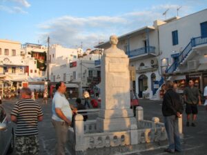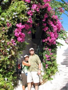 While we were walking up Matogianni street, we ran into our friend Panos, who remembered exactly who we were and asked how we were feeling. What a charming guy…he had been eavesdropping on our earlier conversation, and now wanted Bob to finish his Vietnam tale. He regaled us with his own funny stories, and had us rolling with laughter in no time. What an incredible ambassador for the island of Mykonos. If we had to summarize our impression of the island based solely on Panos, we would have to say it is a beautiful island with a ton of charm, whose inhabitants are very warm, friendly, compassionate and mischievous.