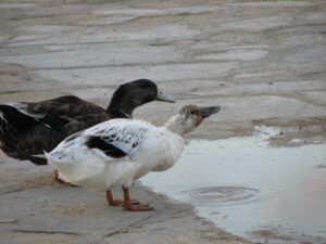 Mykonos’s most famous celebrity was trying hard to play incognito this morning, and we almost strolled right past him without a second glance. His name is Petros, and he is a cheeky white/pink pelican who stood rigidly for several minutes and pretended to be a statue. As soon as his gig was up, he pushed open a neighboring door and strolled inside for a peek. After he was chased out by the cell-phone armed residents, Petros was immediately surrounded by camera-wielding paparazzi….um, tourists. We laughed at his cult-like status, and headed over towards the harbor to examine the colorful fishing boats and fishermen fixing their nets. And of course Petros followed suit, clamoring for a free fish handout. Within minutes, his throng of admirers rejoined him, leaving us to search for a supermarket for lunch supplies.