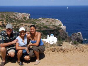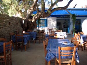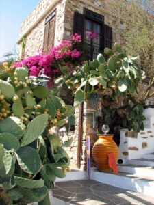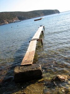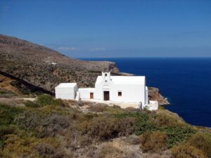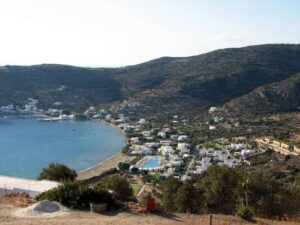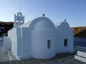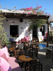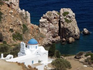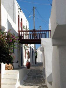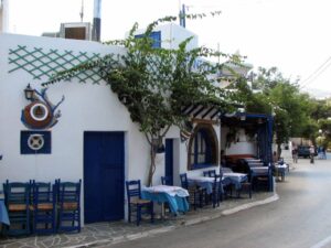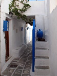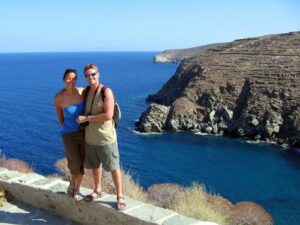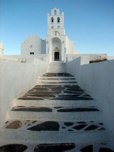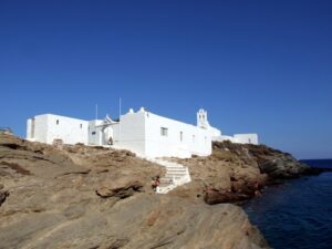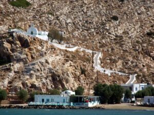 The ship docked off the small village of Kamares. Kamares has many tavernas, cafes, shops and a couple of pubs as well as many traditional ceramic workshops. Apollonia is the island’s capital, an unspoiled town, renowned for its magnificent architecture. Staying here puts one in the heart of Sifnian life. Most of the town is situated off small old footpaths, minimizing traffic disturbance and creating a timeless feel to the town. It’s a very happy and friendly environment and has been awarded in 2002 with a blue flag for its cleanliness. A highlight of the island is Chrysopigi (which means golden fountain). It has taken its name from the famous local monastery. The monastery itself is an imposing site as it is built on a rock islet and cut off from the main island by a narrow strip of sea. There are two great tavernas with traditional island cuisine and turquoise pebble beaches and its flat seaside slabs of stone surrounding the monastery. Sifnos, although small, has a lot to offer and you’re sure to soak up the charm here.