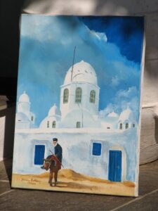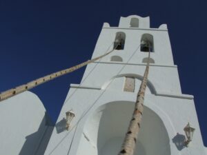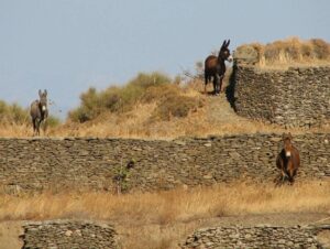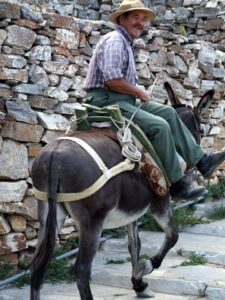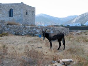 Once we hit Apollonia’s narrow streets, an old man riding his donkey appeared on the road, and we laughed at how natural this appeared even in this day and age. He thought nothing of weaving in and out of traffic, and eventually steered his donkey off the road and onto a pebbled side street. Too bad our vehicular traffic couldn’t navigate Apollonia’s streets as easily! Unfortunately, an elderly woman several vehicles ahead of us had side swiped a parked car, and this created a massive backlog as no one could pass around her. A large traffic jam ensued (large for Sifnos as there were at least 30 cars stuck behind us), and to make matters worse, a large public bus was caught in the middle of the mix. With some patience, time and effort, we finally extricated ourselves out of the jam, and found a place to park off the side of the road. Lunch supplies in hand, we zoomed off to find our first stop of the day, the elusive Panagia Poulati.