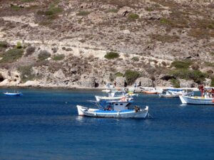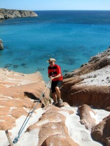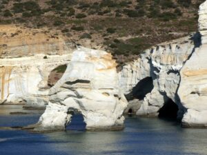 The next morning, the ship’s captain advised us that we would be pulling beside the famous Kleftiko rock formations on Milos’s south west coast, so we joined the rest of the Easy Cruisers to admire these impressive rock formations. Apparently the only way to see these formations are to sign up for a tour boat excursion, which stops at the best beaches and coves around the island.