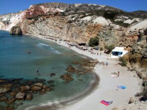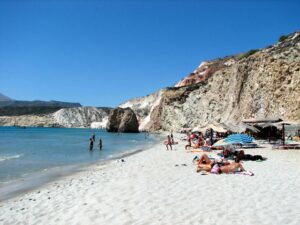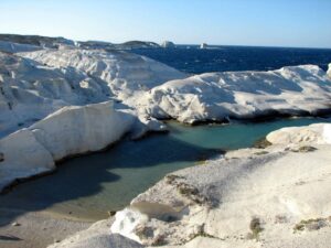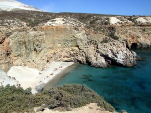 Milos is a wonderful island of the Cyclades. It’s full of surprises, charms and beauties. The island is unique for its astonishing lunar landscape which creates unbelievable and imposing rocking formations colored in deep red, brown or glimmering white. Those fantastic hills and rocks are often emerging from a turquoise sea, bordered by fine golden, white or gray sand. Apart from sunbathing and swimming, this is an excellent island for snorkeling because of its many caves. Villages and small towns are charming and very attractive. The main town is Adamas where the ship will be docked. In Plaka, Milos’ capital, there are quite a few things to see. You can visit the archaeological museum where various artifacts from the excavations on the island are displayed. One of the most famous sculptures of the ancient world, Venus de Milo, was found here on the island by a farmer. There are a few shops in Adamas and Plaka, and you can get your own copy of Venus. Most bars and clubs are located in Adamas and Plaka.