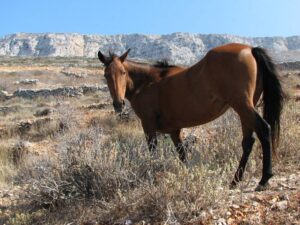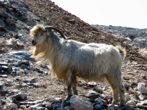 We stopped by the first gas station we saw on our way up to Chora to refuel, and amazingly this venture only cost us 6 Euros for both scooters. At the Chora roundabout, we followed the signs towards Aegiali (Egiali) and enjoyed the curvy roads and the phenomenal view. Mountain goats were feeding everywhere, and wow, were these goats nimble! As they saw us approaching, some of the goats would start leaping from one rocky crevice to another. We couldn’t tell if all of the goats were domesticated or not, but many of them did have copper bells strung around their necks. As they ran across and down the road, we would hear them clinking and clanging away, causing quite a noisy commotion.