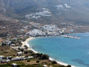 Amorgos, the easternmost island of the Greek Cyclades island group, is famous for its gorgeous beaches and its incredible blue, pure endless waters. Because of its infinite beauty, it was chosen by Luc Besson as scenery for the principle scenes of his movie, The Big Blue. Swimming in its deep blue waters is a unique experience for the lucky visitors. Amorgos is distinguished for its archaeological wealth, popular architectural art, and local customs. The local residents occupy themselves with agriculture and animal farming as well as with fishing, which is plentiful since in this region of the Aegean Sea, the fish is abundant. Not to be missed is the monastery of Panagia of Hozoviotissa located at the northeast of the capital of Chora. It was founded by the Byzantine Emperor Alexios Komninos in 1088 and it is considered a most important site.