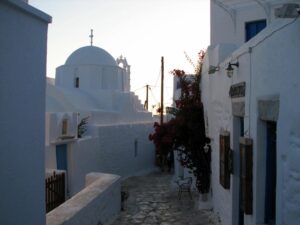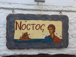 We still had a hike back uphill to return to Chora, so we departed the monastery reluctantly and made it back 40 sweaty minutes later in time for sunset. Wandering around Chora’s streets are a delight, as they are very quaint, clean, and confusing…leading us to walk in circles until we realized “hmmm, that building looks awful familiar” and were able to orient ourselves after a period of trial and error.