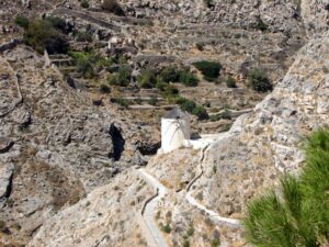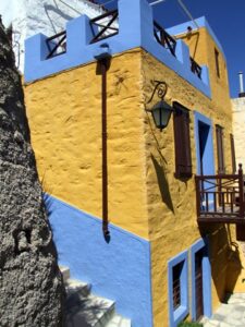 The city square was full of pigeons, and every time something or someone startled them, the pigeons would congregate in a flock and swarm the skies, leaving us to dodge their droppings. The north side of the Plateia Miaouli was dominated by a neoclassical town hall, and adjacent to the town hall were a set of stairs leading uphill. We climbed the steep steps in the midday sun, and were drenched with sweat before we reached the very top. The shaded benches of the Orthodox Church were a welcome sight, and we sank wearily into them and chugged a liter of water. Bob and Ann were perfectly content with sitting under the shady tree for a bit, while we wanted to hike onward towards Ano Syros. So we agreed to meet back down in the harbor, alongside the waterfront cafes in a few hours.