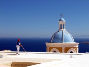 Syros first rose to commercial power as a Phoenician seaport, and later the 13th century Venetians turned it into a trading capital. Steamships and the rise of Piraeus as the modern national port, however, ended Syros’s glory days, until the last 20 years, when the shipbuilding industry has helped Syros regain its economic footing. Now, Syros is home to almost half of the Cyclades’s permanent residents. Tons of Greek families have made their home in the seaside villages, and visitors are treated to an uncommonly bustling island lifestyle and the medieval settlement of Ano Syros, high on one of Syros’s two peaks. Syros is home to Ermoupolis, the most handsome of all Cycladic towns. If you break the lightest of laws anywhere in the Cyclades, you will be whisked off to court in Syros. It’s probably best to make your visit to Syros voluntary instead.