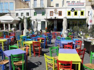 Becky and Ann did want to scope out the shopping opportunities in Syros, but most stores were already closed for their afternoon siesta. A quick glance was all they needed to determine that Naxos was definitely the better shoppers’ paradise, with a larger selection of stores and merchandise. No excuses not to partake in naptime…it was great to wander right back onto our cruise to join the locals in the afternoon tradition of siesta.