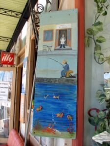 Our dinner plans were pretty flexible, but we all decided seafood would be our choice for this evening. While gathered up in Bob and Ann’s party cabin, we heard the Easy Cruise announcement that the boat would be relocating in 30 minutes and no one would be allowed to disembark or embark during this time. Not wanting to be trapped on the boat, we joined several other passengers in the rush downstairs only to find out that no one was allowed to disembark the vessel because it was actually relocating right at that moment. So much for the heads up announcement! We drowned our sorrows with some red wine, so that by the time we finally were allowed to disembark, everyone was feeling pretty good.