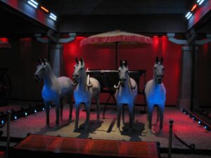 After taking in the exhibits, we had about an hour of spare time so we headed back to the Grand New World and recharged our batteries and downloaded some photos. Tonight’s entertainment consisted of a dumpling feast, followed by a Tang Dynasty show (www.xiantangdynasty.com). Because the streets were packed, we headed out a bit early to the Tang Dynasty Restaurant where we had a dumpling banquet. This whopping “banquet” had over 50 various types of dumplings consisting of crab, prawn, chicken, pork, beef, duck, vegetables, sweet bean, coconut, etc. Needless to say, we were still full from lunch although Robby made a valiant effort to consume everything. Dinner was amazing, but too bad we had eaten like little piglets earlier in the day. We would have been able to do more damage had we known how good the banquet would be. After dinner, the Tang Dynasty put on an hour long cultural show accompanied with a live, classical Chinese orchestra. Chen had already given us a historical rundown on the show, so we were prepared and knew what to expect. The show was a fancy affair with great lighting for photos. Too bad we were seated in the rear of the room, as our neighbors’ bobbing heads invariably snuck their way into our photos. We thoroughly enjoyed the dinner and show and were so glad that all of this was prearranged for us. We know that had we been traveling independently, we wouldn’t have organized our itinerary to run as smoothly.