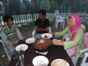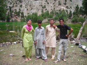 From Gilgit, we had a four hour drive to Astore, our destination for the day. Astore village is located at 2450 meters, and many intrepid trekkers use it as a base to hike the extremely dangerous Nanga Parbat, aptly nicknamed “killer mountain”. We drove from Astore Village up a steep path towards Rama Lake, where we checked into the comfortable PTDC Motel. After enjoying a quick lunch of chicken corn soup, we decided to hike up to the lake, which took us through some really pretty scenery. We stopped to pay a quick visit with a family who had migrated up with their cattle to enjoy the Summer pastures. There were several fishermen trying their luck at trout fishing at Rama Lake, and we hung out for a bit, catching our breath and admiring the sunset. It was nearing dusk when we finally trekked back down to the inviting PTDC Motel. Unfortunately, power was out when we returned, so we had to wait for our fried rice, roasted chicken, and french fries for dinner. All of us were famished and very happy when dinner was served at 2030, albeit by candlelight. After dinner, we crawled into bed, but had to get double blankets to combat the cold. It was rather chilly at night up in beautiful Astore! We were skeptical when the hotel staff assured us we would have hot water showers upon waking up next morning…