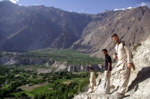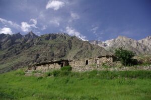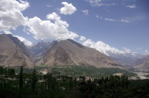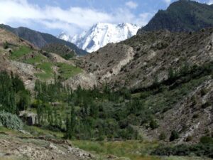 We had a short drive to Minapin, where we checked into the lovely Diran Guest House. The orchards and gardens surrounding the guest house were inviting, and we were greeted with a cold glass of fruit juice upon check in. The owner told us that business was down this year, despite Rakaposhi Base Camp being one of the more popular treks in Northern Pakistan. In previous years, this guest house would be absolutely packed with tourists in the middle of summer, but this year, he had only had a handful of visitors. Zia and Jan joined us for a short hike around Minapin, where we hiked uphill for a bird’s eye view overlooking the valley. Becky had a severe case of the sniffles, so she decided to lay down and rest while Zia and Robby hiked further to the top of a hill offering a nice panorama of Rakaposhi Base Camp. Apparently, it’s a 3 day (relatively easy) 18 km hike to reach base camp. Just before dusk, we hiked back down towards our guesthouse, where we enjoyed mutton pie and mutton karai for dinner.