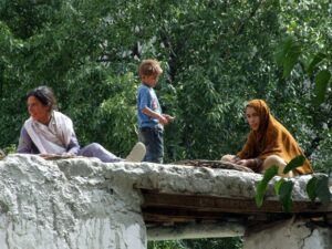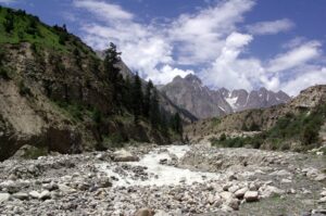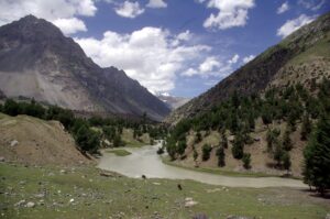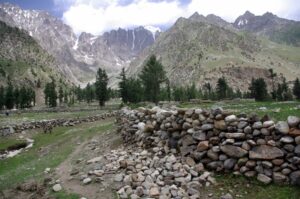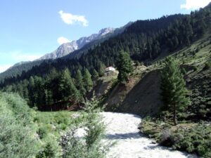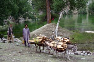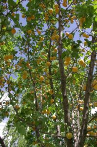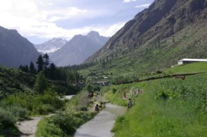 12 July 2008: We had toast and fried eggs for breakfast at the Hotel Riveria’s second floor restaurant. Becky donated her Dean Koontz book to the receptionist as we checked out of the hotel. Our new jeep was ready and waiting, and we met our new driver, Jan, who hails from upper Naltar (the village we were visiting today). Sadly, we had to bid farewell to Hamid, who was staying behind with our old jeep to ensure it got the necessary mechanical attention it needed. The drive from Gilgit to Naltar was fairly short, but extremely scenic, especially as we drove up towards Naltar, which Becky nicknamed “Little Switzerland”. The alpine like scenery was spectacular, and we pulled over for some apricot picking. Apricots galore were bursting from trees all around us, and we soon filled up a plastic bag full of apricots.