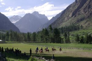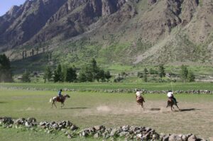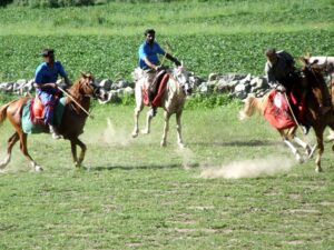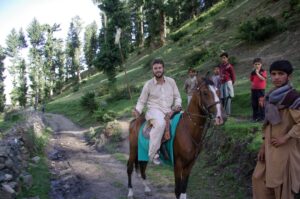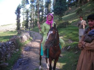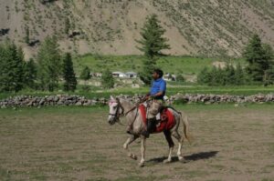 On our return trip back down to Naltar, we ran into a polo player who was headed towards practice. He invited us to come watch the impromptu match and we agreed. First, we had to find a place to sleep for the night. We checked at the Hilltop hotel first but they didn’t have any available rooms, so we ended up staying at the 4 View Hotel. It was a brisk walk from the 4 View Hotel to the polo ground, and a large, local crowd had already gathered to watch the match. We watched in excitement and found the match to be equally as entertaining as the Shandur festival’s polo matches. At the culmination of the match, we were invited to mount the horses to strike our best polo pose…which was quite funny because we had quite an audience watching our every move!