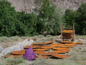 11 Jul 08: Our five hour drive towards Gilgit meandered through some beautiful areas, and we alternated between snoozing in the back of the jeep to waking up and staring at the passing scenery. Hamid was reluctant to shut our jeep down (for fear that it wouldn’t start back up), but we were forced to when we had to refuel. Sure enough, the jeep wouldn’t start back up, but thankfully after about a dozen attempts, the engine roared to life and we took off. By this point, we made it clear that we needed to talk to a Vertical Explorers representative to discuss swapping our jeep for another vehicle in Gilgit. We didn’t want to envision ourselves stranded out in some remote part of Pakistan, especially somewhere with no cellular phone coverage! Apricots were in full season, and we noticed blankets of orange spread throughout the countryside, with women bent over painstakingly laying out hundreds of apricots to dry. Very cool! Becky had never seen so many apricots in her life, and wanted to stop to watch the women work. But everyone else was eager to reach Gilgit, which we eventually rolled into just before dusk. Gilgit is the capital city of the Northern Areas, and it is located in the foothills of the Karakoram Mountains. We checked into the lovely Hotel Riveria, located across the riverbank of the Gilgit River, on River View Road, Chinar Bagh, Gilgit.
