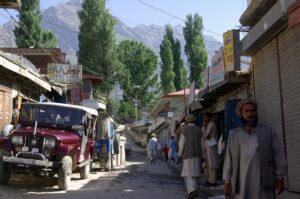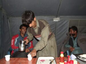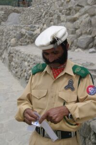 After dinner, the receptionist informed us that the hot water was ready in our room, so each took our time in the shower…the hot water felt excellent! At 2230, right when we were getting ready for bed, Zia informed us that our presence was due at the VE manager for Gilgit’s house to discuss arranging a new vehicle. Boy, the last thing we wanted to do so late at night was go to some meeting to get a new vehicle. We later found out that Zia has misunderstood our intent…we were perfectly happy swapping out our jeep for another jeep. However, he thought we were insisting on swapping out the jeep for an SUV. Caught in the middle, we reluctantly got dressed and headed over to the manager’s house, where we all sat by lamp light discussing our plans and desire for a new, replacement vehicle. The VE manager was offering up his personal SUV, but stated it wouldn’t be available for the duration of our trip…just for a few days. Unacceptable for us, since we just wanted to swap our vehicle one time and be done with it. Thank God for Saeed who called on Zia’s cell phone and quickly smoothed things over. Once he understood that we were fine with another jeep, our negotiations ceased and the situation was handled. You can bet we really missed Saeed as our tour guide that night! We returned to the hotel at 0100 and wearily climbed into bed. Mission accomplished though…we had new jeep on the brain as we both fell into a deep slumber.