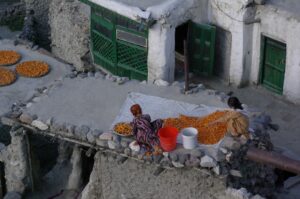 The scenery was spectacular, and it seemed at every corner that there were women laying out apricots to sun dry. These blankets of orange and red stood out in contrast to the surrounding greenery, and we kept our eyes peeled open, lest we miss a single sight. Finally, the bustling town of Karimabad came into view, and for the second time on the trip, we saw quite a few foreign tourists hiking around town (the first influx of foreign visitors was at Shandur). Baltit Fort loomed in the distance at the pinnacle of Hunza. Our guidebook described Baltit as “Hunza’s ancient capital. Its magnificent fort, on a throne-like ridge with Ultar Nala yawning behind it, has always been the kingdom’s focal point. The fort served as the royal palace for over 750 years until last century, when sounder quarters were built below in what came to be called Karimabad.” We were quite excited to visit the 13th Century Baltit Fort, as it had recently undergone an intensive and phenomenal restoration process. The results were magnificent, and the fort is a tourist magnet for all those visiting the famed Hunza valley. After Zia purchased our entrance tickets, we linked up with a local guide, who explained all the fort details, including the heavy influence from the Tibetans and their Potala Palace. Indeed, it almost felt like a case of déjà vu, as we had visited Potala Palace for the first time a mere 6 months ago! The uncanny resemblance made us wonder just how much influence the Tibetans had over Hunza’s old rulers.