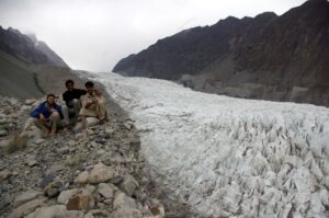 The drive to Borit Lake was interesting, with Jan cautiously driving our jeep across several steep switch backs and zig zagging his way up the mountain. We pulled up alongside the Borith Lake Hotel and walked down to Borit Lake, which was a bit anticlimactic because there was absolutely no activity on the lake itself. Everyone was huddled up at the hotel sipping cups of tea, overlooking the pristine (but empty) lake. After half joking that we should fish for trout, we decided to move onwards to the Passu Glacier, stopping for an intense apricot picking session as the fruit laden trees were simply too irresistible to pass on by. After we filled up an entire plastic bag’s worth of apricots, we started munching on them as we headed towards Passu. The Passu Glacier has been receding in recent years, but we hiked up to catch a fine view overlooking the glacier. Robby and Zia decided to be daredevils as they struck dangerous poses on the cliff’s edges, with nothing to save them if the cliff gave way. It was a misty morning, but definitely a worthwhile visit to Passu. Zia told us we could hike an additional 2 hours uphill if we wanted to see more of the glacier, but we both felt we saw plenty at our lower elevation.