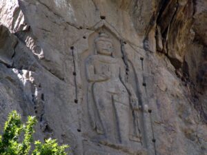 15 Jul 08: We had an extra early wake up call as Becky heard a loud avalanche in the distance at around 4 am. Robby slept through it of course! At 0700, we enjoyed a quick breakfast (tea, omelet, na’an, and oatmeal) before checking out of the Diran Guest House. It was a relatively short two hour drive to return back to Gilgit, where we dropped Zia off to settle some business (and withdraw some additional funds for the duration of our trip). In the interim, Jan took us to see the rock carving Kargah Buddha, a large standing Buddha carved on a cliff face in Kargah Nala. It was a short drive to the 7th Century site, which is located on the outskirts of Gilgit. When we returned back to Gilgit to pick Zia up, we were both relieved to hear that we would keep the jeep for the rest of our tour….good thing, as we had quickly fallen for our new jeep and would be heartbroken if we were forced to swap to another vehicle again. We had planned to link up with Hamid to bid him a proper goodbye, but unfortunately, he had already moved onward with another tour group towards Skardu.