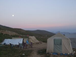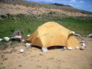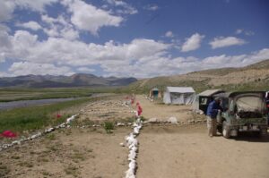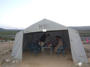 The big excitement for the day was when Becky lost her flip flop in the river. The current quickly swept it away, but some local boys heard about her plight, and chased it down at least half a mile, before jumping into the frigid water to rescue it. Wow…talk about the kindness of strangers. We both retired to our tent after that mishap and decided to read for a bit. Dinner was served in the mess tent, where we enjoyed a vegetarian meal, followed by the obligatory hot, steaming tea. It was COLD out after that, so we huddled in our sleeping bags and crashed out.