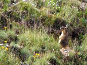 17 Jul 08: Mosquito invasion this morning! Dousing ourselves with OFF did not prevent them from biting us. There were literally hundreds of mosquitoes swarming around our tent, our jeep, on our clothes, just everywhere. It was like medusa’s head…kill one and three more would appear. We were a bit put off at the overwhelming number of mosquitoes all around us, and wondered why they only seemed to appear in the morning? We were definitely motivated in packing up our gear and loading up the jeep, as we knew once we started moving, the mosquitoes would not be able to catch up with us. After chatting with the Deosai Park Ranger (who had personally seen plenty of brown bears in Deosai), we bid him farewell and took off. Thankfully, we soon left the mosquito horde behind, and in their stead, we saw plenty of marmots, which looked like fat, overstuffed prairie dogs. These obese marmots would run halfheartedly away from our jeep, before slowing to a trot and then pausing completely in open curiosity. Most of them were too busy focusing on sunning themselves to pay us any attention. Clusters of them would be standing in a row, ears perked and at the ready, watching the latest entertainment pass them by.
