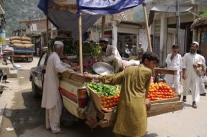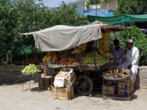 5 July: Our itinerary for today was to make our way from Dir to Kalash Valley for an overnight homestay. We inadvertently overslept due to the time change confusion, and showed up at our agreed upon 0800 breakfast meeting, not realizing that it was actually already 0900. Saeed had left us a post-it explaining that he was at the bazaar with Hamid attempting to get our jeep fixed, so we settled for breakfast on our own. Afterwards, we ran into Saeed when we decided to walk around Dir’s bazaar for a quick look around. We found the locals to be very friendly, curious, and welcoming. Becky noticed the lack of women at the bazaar as it was full of young boys and men, but not a single woman! Dir’s bazaar was lively and colorful, and we caused a commotion with the locals wanting to take photos with us. It is hard to imagine that this area of Pakistan is advised as “off limits” due to terrorism.