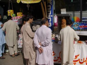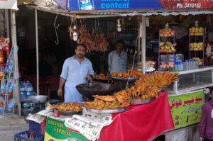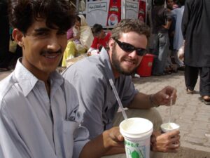 The group took a consensus and decided to detour to Murree, located about 70 km away. Zia assured us this route, taken up through the hills, would be a cooler drive than going straight down towards Taxilla and then onward to Islamabad. We were completely flexible, and were surprised to see the carnival like atmosphere in the hill towns around Murree. It was a Sunday, and it seemed that a majority of Islamabad’s residents had joined us here for a short weekend getaway. The roads were packed, meats were grilling, families were all out in full force having a merry old time. We really liked the vibe here, and strolled around Murree’s “The Mall” pedestrian street, seeking our own fun. More mango juice ensued, followed by some tasty fried snacks, and window shopping. The women here appeared a lot more laid back and relaxed about wearing the head scarf, and the scene here was reminiscent of any other holiday town. Everyone was out to have a good time. Robby decided to shoot a bunch of balloons with a pellet gun, and had to laugh when the vendor decided to bump up the price afterwards. Some of the locals joined in to haggle the price down, saying it wasn’t right for the vendor to try to take advantage of tourists…the price was compromised down to a reasonable level and we escaped Murree with a hitchhiker, Ishaq, who runs a digital media studio in Rawalpindi.