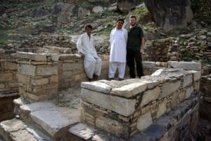 We drove on Malakand Pass (there had been some fighting here recently but a tour group successfully passed this route approximately 2 weeks ago and the road was still deemed safe), and had to make frequent stops to register our passport and visa information at the “Foreigner Checkpoints” that we passed along the way. We stopped for lunch at a Bat Khela restaurant. The restaurant was owned and run by an Afghan family who lived near Jalalabad but had fled to Pakistan to start a new life. The food here was excellent, and we enjoyed our traditional Afghan style lunch. Afterwards, we paid a visit to Saeed’s friend (Sadik who works in Saudi Arabia) and were invited into his home for some drinks and snacks and conversation. His home was very close to the rarely visited 1st Century AD Buddhist ruins of Chatpat. We could have walked the slight incline uphill to get to the Buddhist ruins, but Hamid insisted on loading us all into the jeep for a short (but super bumpy) ride uphill. We were quickly swarmed by the boys of Chakdarra who had chased our jeep the entire route uphill in plastic flip flops. We soon found out the boys were photo hounds, and they posed happily for photo after photo with us. The Chatpat Ruins reminded us a lot of Takht Bhai, and the views surrounding this serene site were quite lovely. Sadik told us that the Buddhist relics had been moved to the nearby Chakdara Museum for safekeeping. We wanted to pay a short visit to the museum, but on our way back down Robby got sucked into an impromptu cricket match with the boys. Unfortunately for us, the Chakdara Museum was closed due to Friday prayers, so we decided to bid our new found friends of Chakdara goodbye. Sadik and his family kept insisting that we spend the night at his house, but we still had a long drive ahead of us to reach Dir, so we pressed onwards.