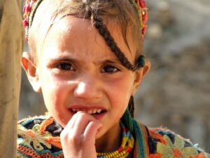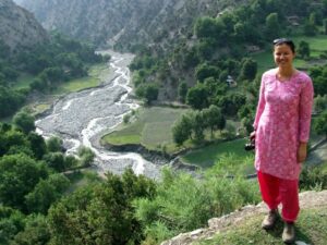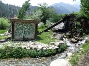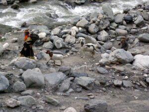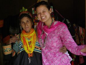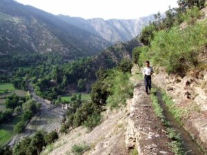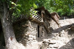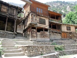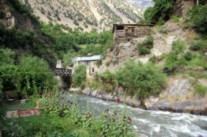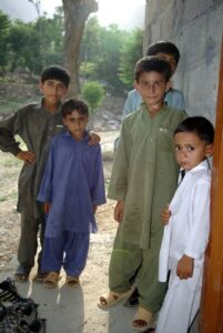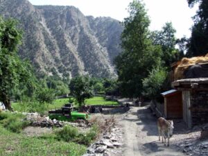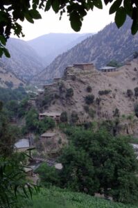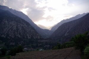 Just before dusk, we finally reached our destination, the Kalasha Valleys. These three narrow, rather isolated valleys of the HindoKush range include Birir, Bumboret, and Rumbur. Living in these valleys is the Kalasha tribe, which numbers from 2,500 to 3,000 members. The Kalasha are non-Muslims believed to be descendants of Alexander the Great’s army. Tonight, we decided to sleep in Birir Valley at the Insaf Hotel but it was already booked, so we agreed to a homestay at the Kalash Guest House instead. Our simple, bare-bones room was adjacent to our Kalash host’s own home. We still had a few minutes of lingering daylight so we walked uphill to admire the final rays of the sun set before returning back to our guesthouse for a delicious vegetarian dinner. Saeed supplemented our dinner with several sumptuously sweet mangoes we bought at the Dir bazaar, and we went to bed stuffed. Surprisingly, we had electricity, and were grateful that we didn’t have to stumble to the outhouse in the dark. After laying down our sleeping mats and bags on the carpeted ground, we both fell fast asleep. Saeed and Hamid decided to camp out on the roof of our host’s home, which was a good plan (nice cool breeze) until 0400 the next morning when a torrential downpour rudely woke them up.