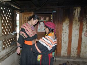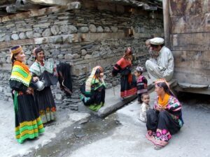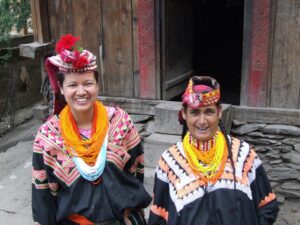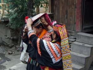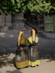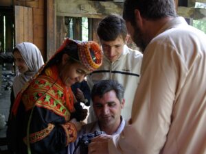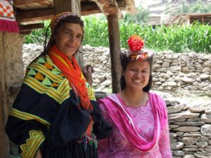 Hamid was standing by our jeep with a bunch of Birir valley kids clamoring for a group photo. We happily obliged before waving goodbye. Next stop was Bumboret Valley, which Lonely Planet claims as the “most picturesque valley”. Ummm, we have to respectfully disagree. For us, it was way too touristy with far too many hotels, and it felt like Bumboret lost the natural charm that Birir held. Hamid drove us all the way to the end of the valley where we disembarked next to a mosque. Although the Kalasha are non-Muslim, they are constantly bombarded with immigrants from neighboring Afghanistan and elsewhere in Pakistan pressuring them to embrace Islam, and many Kalasha have converted. Hence the mosque calling all Muslim faithful to prayer when we arrived to Bumboret. Saeed introduced us to several of his Kalasha female friends who he had befriended over the years at the various festivals. All of them participate in the traditional dancing that occurs at annual Kalasha festivals, and they were very happy to share their heritage with us. Becky was soon dressed from head to toe in a traditional female Kalasha outfit and led to the village square in Bumboret where the festival dances take place…very cool! We also drank copious amounts of some home made wine which was super strong (and tasty).