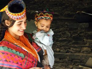 A brief visit to the Kalasha Museum in Bumboret was a highlight. We met the super friendly Greek curator who explained that the Greek government sponsored the building of the cultural center of Kalasha or “Kalashadur” to capture the history of the Kalasha tribe, which she adamantly believed to be descendants of Alexander the Great’s troops. The artifacts and photographs in the museum were laid out in a very easy to follow manner, and we definitely recommend that visitors to the Kalasha Valleys pay a visit to this fine museum. Our last visit of the day was a stop to Rumbur Valley where we decided to stay overnight at the excellent Ingineer Khan’s Kalash Home guesthouse. We were invited to relax with a cup of tea and a plateful of fresh apricots, but were keen to hike around Rumbur with the limited daylight remaining so we decided to press on and return for dinner and chai later. Rumbur is perhaps our favorite Kalash Valley as a nice compromise between Bumboret and Birir. It is an extremely serene, peaceful and beautiful corner of Pakistan, and we really enjoyed our time here. The Kalasha were very friendly, and as Robby and Saeed hiked upward to a male-only Kalasha sacred altar, Becky found herself surrounded by several curious Kalasha girls. We spent some time getting to know the children and were invited to visit the rest of their family at their nearby home. We really enjoyed this cultural interaction, and can only imagine how much longer the Kalash will be able to preserve their unique traditions and lifestyle. A short hike through Rumbur Valley was the highlight of our day, and we easily could have stayed here for several days instead of just one night! Later on we read in Ingineer Khan’s guesthouse visitor’s log and saw that many other travelers came to the same conclusion, with most of them extending their stay here.