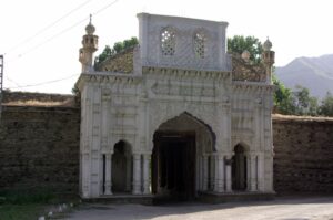 7 July: Even the best laid plans sometimes go to the wayside. We had coordinated with Zia for a 0530 breakfast, 0600 departure but not a creature was stirring at 0530. At 0630 Zia apologized for oversleeping but we wondered if he had told Ingineer of our plans for an early morning breakfast? In any case, we ate some yummy paratha (thick, layered bread), topped with marmalade and butter, and downed it with a couple cups of chai. Delicious! After thanking Ingineer Khan and his wife for their hospitality, we picked up Craig (our Scottish hitchhiker), loaded up the jeep, and head off towards Shandur. First, we had a brief stop in Chitral to visit the Chitral Fort. Lonely Planet states “the mehtars’ palace-fortress is still occupied by descendants of the royal family…the most interesting side faces the river”. We didn’t have any problems sneaking a peak of the inside grounds of the fort, and afterwards, paid a brief visit to the adjacent Shahi Masjid (Grand Mosque).