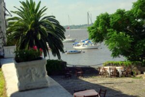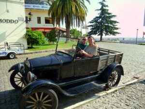 25 DEC: Merry Christmas. It was the perfect day to leave sleepy BA and head over to neighboring Uruguay. Our destination for an all day excursion was Colonia del Sacramento. It was good timing since nothing was open, and we had been advised that a very few select shops would be open during limited hours today…making for a boring day in the city. Plus a boisterous drunk was comically shrieking/singing at the top of his lungs down from Ave de Mayo, serving as our wakeup call. After grabbing a quick breakfast, we headed towards the Buquebus ferry terminal at Puerto Madero. Armed with our passports, tickets and Argentinean tourist card, we joined the massive queue to check in and passed through passport control. Interestingly enough, we were not only stamped out of Argentina but stamped into Uruguay at the immigration control section of the terminal…that meant once we landed in Colonia, we were free to immediately depart and tour the city. Colonia was listed in our Buenos Aires guidebook as one of the top things to do while in BA…keep in mind that Colonia is not actually in Argentina at all but in next door Uruguay. Some Buenos Aires locals (known as “Porteos”) claim that Colonia is actually a suburb of Buenos Aires! A little research and we found out that Colonia was a Portuguese settlement on the Rio de la Plata, serving as a major hub for lucrative Portuguese smuggling operations. As a result, Spain lost untold fortunes in tax receipts due to the smuggling operations in Colonia and the ensuing battles meant that the city flip flopped between Portuguese and Spanish control. Even Brazil lay claim to this pretty city, until the country of Uruguay gained its independence in 1828. Lucky for us, the “Barrio Historico” (historic quarter) of Colonia has been designated as a UNESCO World Heritage Site, effectively sealing it in a time warp that perfectly preserves this quaint (and perhaps over-restored) old colonial town. Our journey from BA to Colonia took a leisurely 3 hour ride. Once we arrived, it was immediately evident that the city is a scenic and well preserved one that appears to have been frozen in time…we are sure that the locals put a lot of effort into ensuring that the city looks that way! We happened across several antique cars strategically placed on various cobblestone streets to help stir up a tinge of nostalgia. One car was even used as a dining area for guests at a restaurant. Antique street lamps adorn almost every corner, and strategically placed flowering bushes compete against the pastel hued mansions for the most scenic award. It was a real joy wandering aimlessly through town, admiring the exquisite scenery. There was very little traffic (the tourists who rented scooters to zoom around the city were few and far between), and the Barrio Historico was a serene asylum of peace and quiet…quite a different scene from the hustle and bustle of Buenos Aires! We wanted to visit the reconstructed 19th century lighthouse which boasts magnificent views, but unfortunately it was closed to visitors. The “Calle de los Suspiros” (street of sighs) did not disappoint, and we felt as if we could easily spend more than a leisurely day here. We were in the mood for pizza, but several of the recommended restaurants were closed for the holiday. Several other options caught our eye, but one look at the menu’s inflated prices and less than desirable fare and we decided to press on. Since we were armed with Clif bars, we were not too concerned about skipping lunch, but once we chanced upon a parrilla with delicious wafts of grilled lamb floating our way, we knew it was destiny. Our waiter was a delight, and the food was scrumptious. Lucky for us, they accepted US dollars as we hadn’t a change to convert our change. Once reassured we could pay with the good ol American greenback, we sat back and enjoyed our delicious Christmas meal with cheesy smiles on our faces. Keeping in mind that Uruguay is one hour ahead of Argentina, we ensured that we were back at port with sufficient time to catch our return ferry to BA…once we reached our hotel, we were pleasantly surprised by a bottle of wine left for us by reception. Overall a fantastic day.