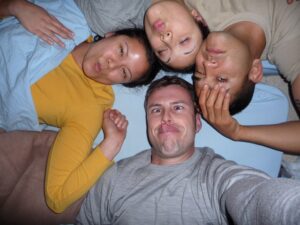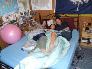 Goofy faces during movie night with Fran & Joe; Camp Victory