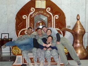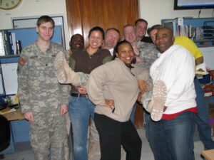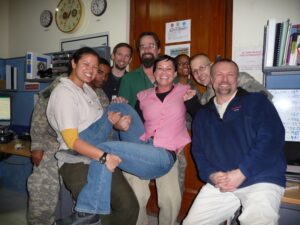 Acting silly with the JOC Bridge team (Woods, Coleman, Becky, Ivan, Pam, Collins, Larry, Dave & Gil); Camp Victory