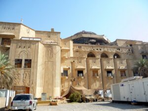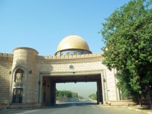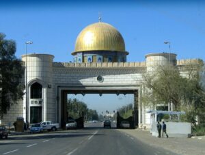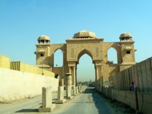 Driving under the Golden Dome Gate in Baghdad's International Zone